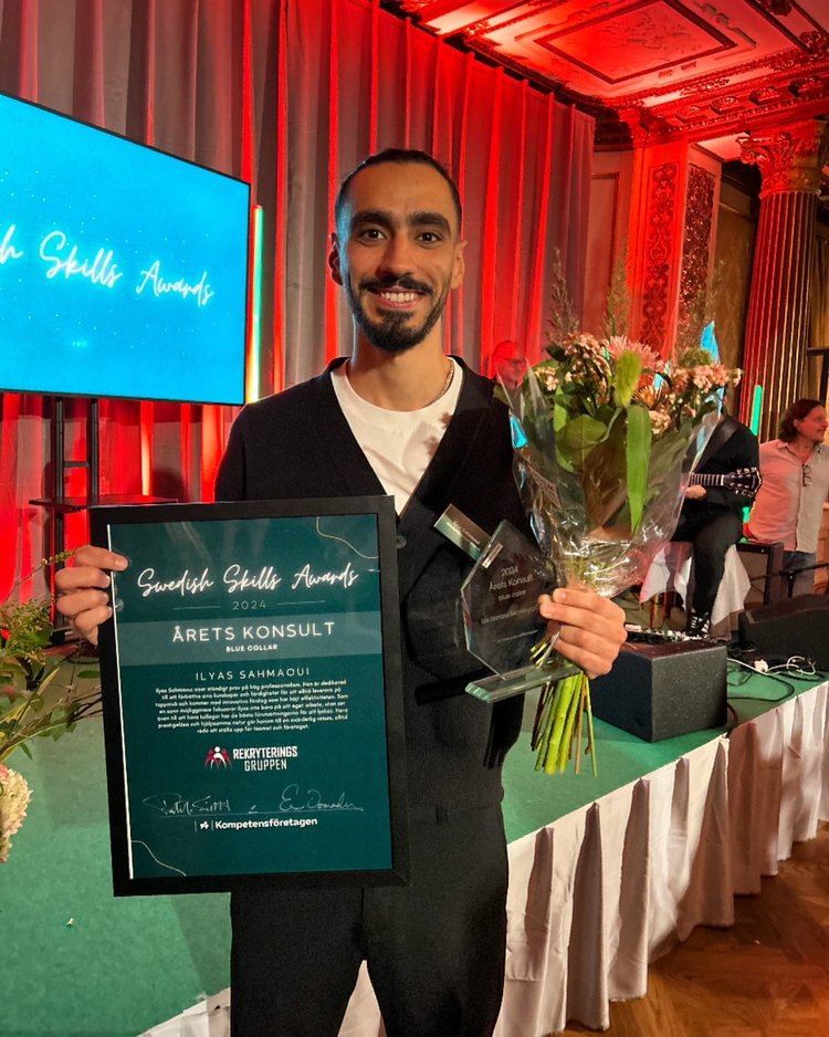 Den 18 september firade vi vår grymma konsult Ilyas Sahmaoui som tog emot priset som årets konsult- blue collar på Kompetensföretagens Swedish Skills Awards! 🎉